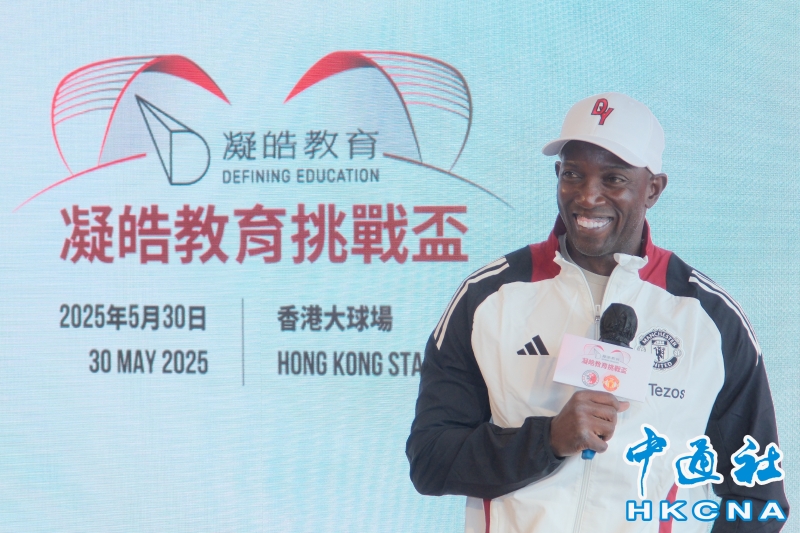 •   英超球隊曼聯下個月底訪港,並將於5月30日在香港大球場對戰中國香港足球代表隊。主辦方4月10日舉行記者會介紹比賽詳情。圖為曼聯名宿德懷特·約克致辭。(香港中通社記者 許其皓攝) 香港中通社圖片