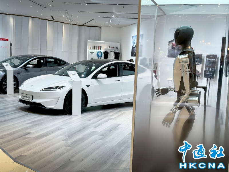 •   4月16日,香港特區政府運輸及物流局在社交網站表示,將調整電動私家車牌照費架構,建議改用額定功率計算電動私家車牌費。目前,香港電動私家車車主繳交牌照費用是以車輛淨重計算,平均每年牌照費約1100港元,與燃油私家車(按引擎汽缸容量計算)的平均每年牌照費約7500港元,差距達六倍。圖為特斯拉電動車在旺角的陳列室。(香港中通社記者 徐文峰攝) 香港中通社圖片