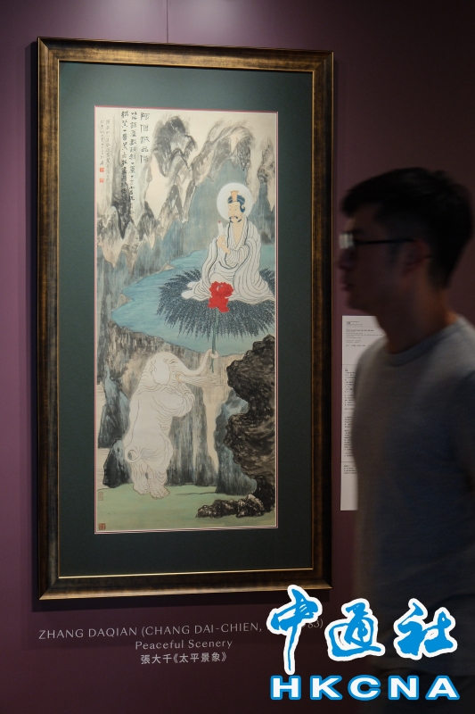 •   香港邦瀚斯4月23日舉行傳媒預覽,展示將於4月29日舉行的中國書畫拍賣珍藏,呈獻近現代及古代翰墨珍品逾180件。圖為張大千的作品《太平景象》。(香港中通社記者 許其皓攝) 香港中通社圖片