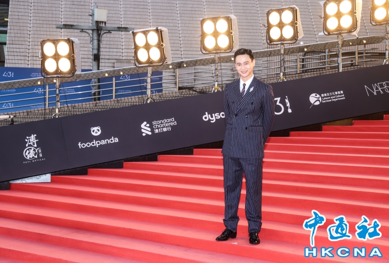 •   4月27日,第43屆香港電影金像獎頒獎典禮在香港文化中心舉行。圖為藝人劉冠廷亮相紅地毯。(香港中通社記者 曹文毓攝) 香港中通社圖片