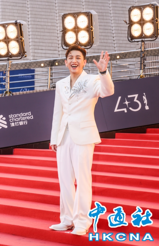 •   4月27日,第43屆香港電影金像獎頒獎典禮在香港文化中心舉行。圖為藝人張天賦亮相紅地毯。(香港中通社記者 曹文毓攝) 香港中通社圖片