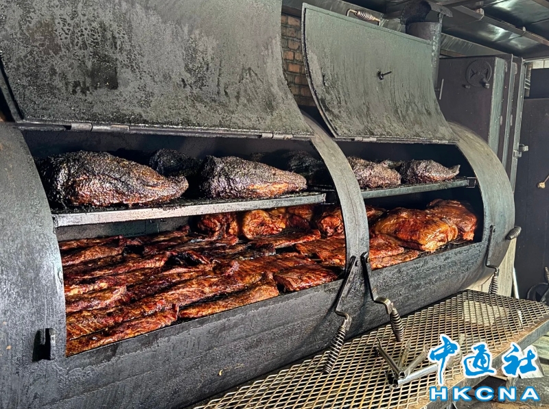 •     北京本壘美式烤肉餐廳內,烤爐中擺放著烤制完成的烤牛肉。 香港中通社圖片