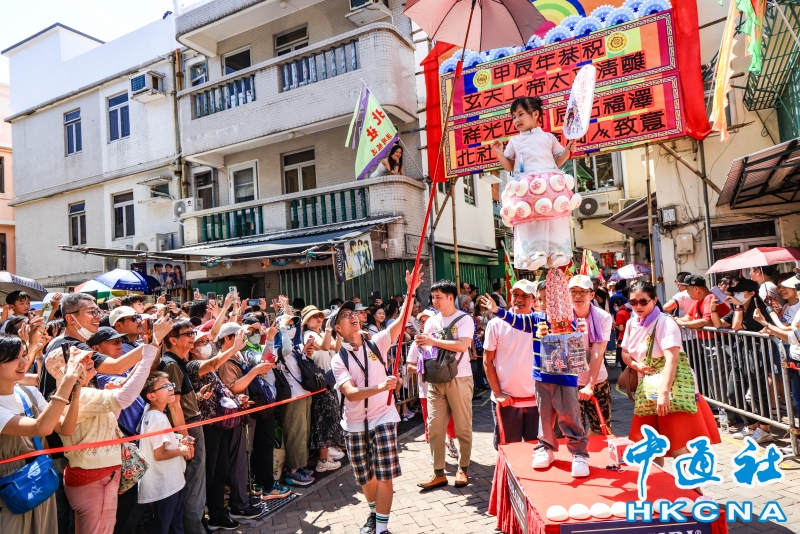 香港非遺太平清醮5日舉行 飄色搶包山為“重頭戲”分享到:
