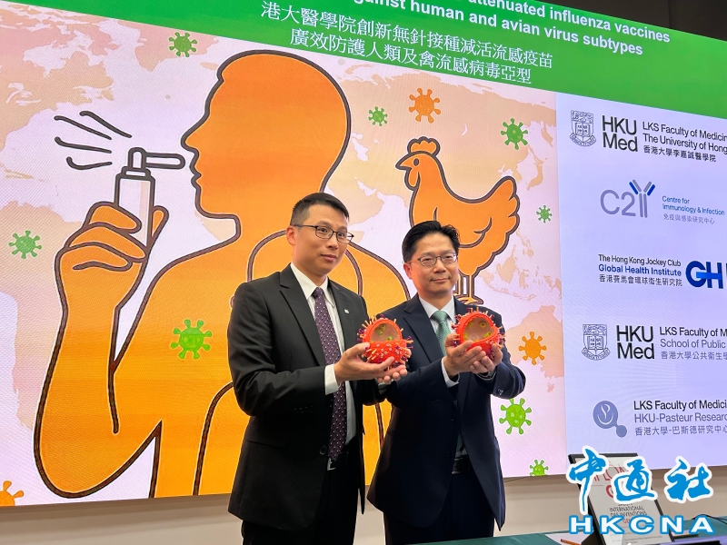 •   香港大學李嘉誠醫學院8日公佈,開創出兩個減活疫苗平台,為研發新一代通用流感疫苗提供可能,僅需噴鼻式接種,可抵禦多種甲型流感病毒亞型,包含人類H1N1、H3N2及禽源性H5N1病毒等。(香港中通社記者 徐嘉儀攝) 香港中通社圖片