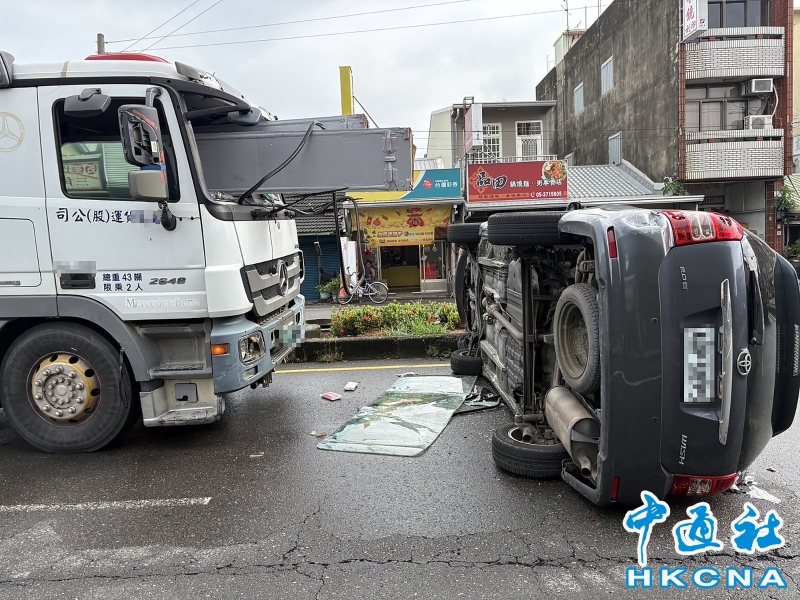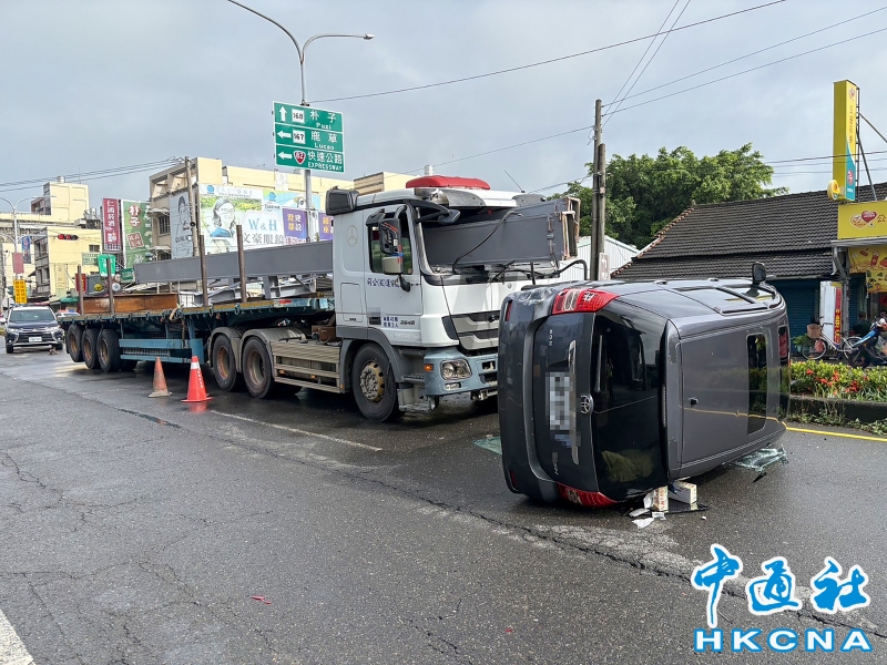 台灣嘉義拖板車追撞 車上鋼骨刺穿車頭分享到: