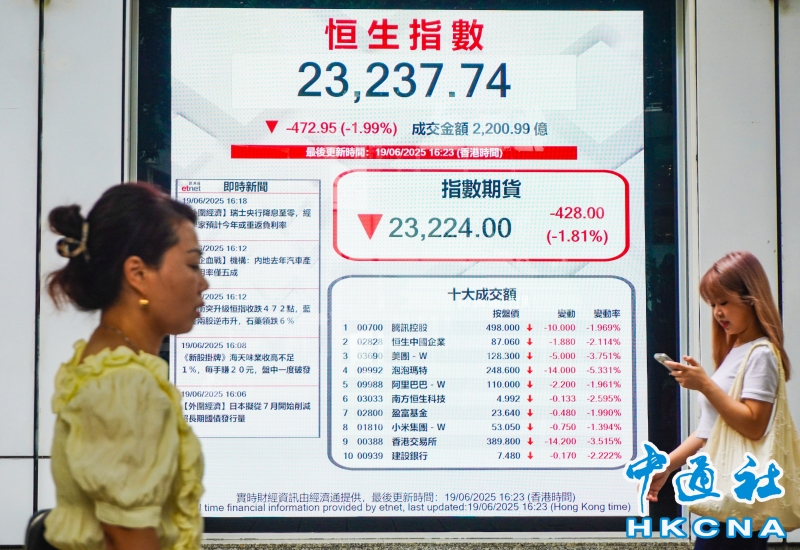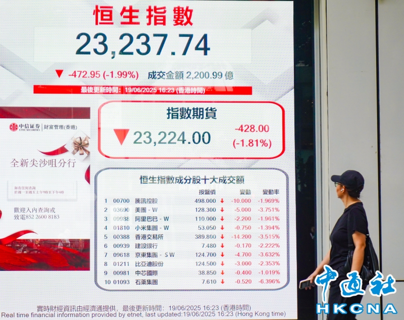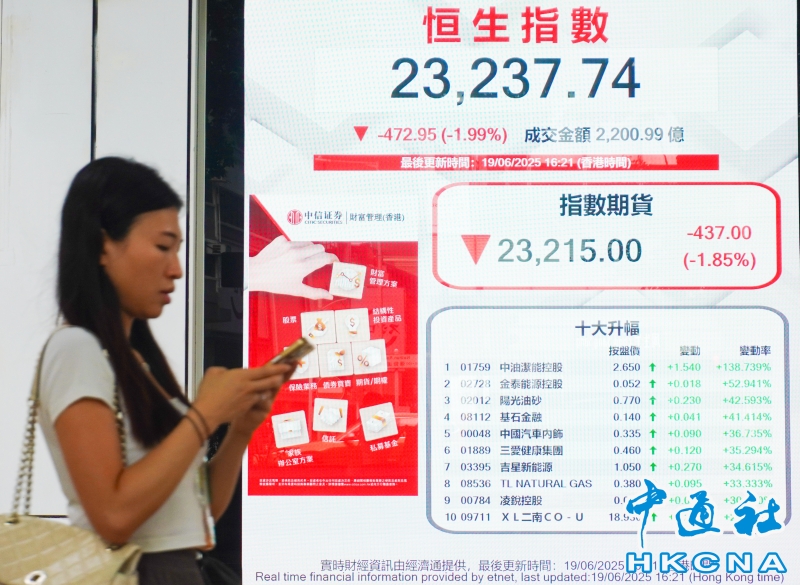 香港恒生指數跌472點 報23237點分享到: