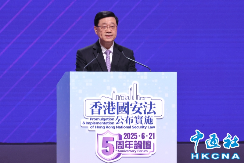 •   6月21日,香港國安法公布實施五周年論壇在香港會議展覽中心大會堂舉行,香港特別行政區行政長官、香港特別行政區維護國家安全委員會主席李家超發表主旨致辭。(香港中通社記者  謝光磊 攝) 香港中通社圖片