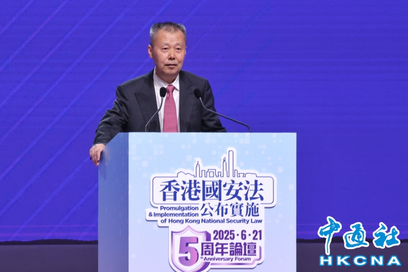 •   6月21日,香港國安法公布實施五周年論壇在香港會議展覽中心大會堂舉行,論壇下午舉行座談環節。圖為全國人民代表大會常務委員會香港、澳門基本法委員會研究室主任楊兆業作主題演講。(香港中通社記者  謝光磊 攝) 香港中通社圖片