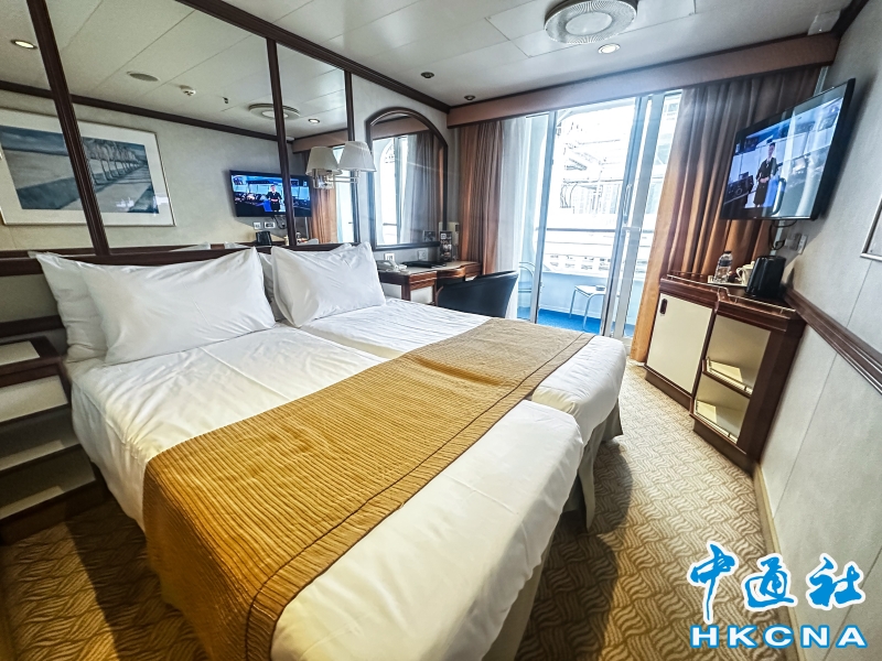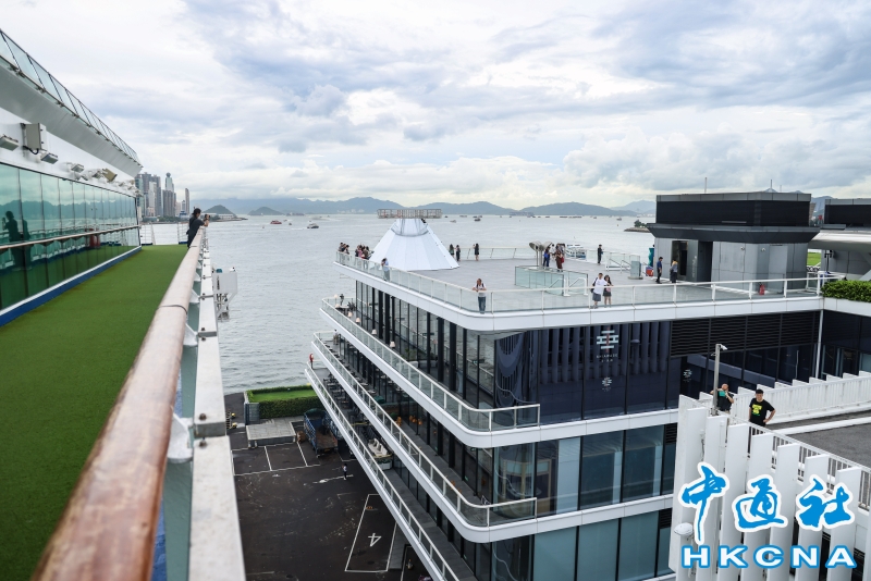 6月27日,全新升級的麗星郵輪旗下“領航星號”正式抵達香港, 以這個國際級郵輪樞紐為母港,開啟2025年郵輪航季。旅客可入住客房或升級皇宮套房,體驗船上多元設施,包括探索樂園、攀岩牆、高空滑索以及各類現場表演。同時,郵輪上亦會舉辦國際級娛樂活動,包括紅毯之夜、季節主題及泡泡狂歡派對等,並提供健身室、桑拿房、娛樂場以及兒童俱樂部,滿足不同年齡段旅客的需求。(香港中通社記者 曹文毓攝) 香港中通社圖片