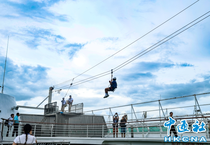 6月27日,全新升級的麗星郵輪旗下“領航星號”正式抵達香港, 以這個國際級郵輪樞紐為母港,開啟2025年郵輪航季。旅客可入住客房或升級皇宮套房,體驗船上多元設施,包括探索樂園、攀岩牆、高空滑索以及各類現場表演。同時,郵輪上亦會舉辦國際級娛樂活動,包括紅毯之夜、季節主題及泡泡狂歡派對等,並提供健身室、桑拿房、娛樂場以及兒童俱樂部,滿足不同年齡段旅客的需求。圖為高空滑索。(香港中通社記者 曹文毓攝) 香港中通社圖片
