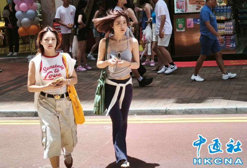 •   7月2日,香港市民在炎熱天氣下出行。當天,天文台發出酷熱天氣警告,預測未來一兩日大致天晴及酷熱。週末期間短暫時間有陽光,有幾陣驟雨。(香港中通社記者 洪少葵攝) 香港中通社圖片