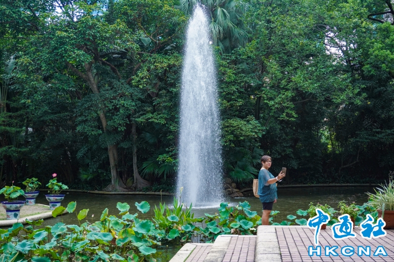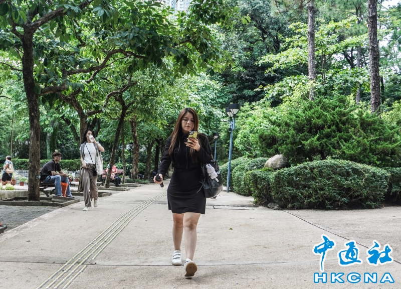 7月23日,香港市區天氣炎熱。天文台發出酷熱天氣警告。圖為市民在公園消暑。(香港中通社記者 曹文毓攝) 香港中通社圖片