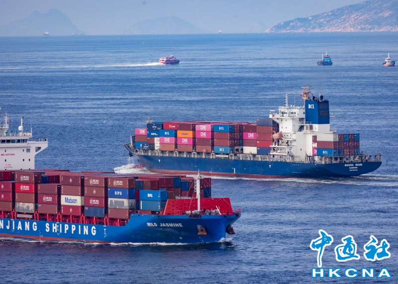 •   7月28日,香港特區政府統計處發表對外商品貿易統計數字,6月香港整體出口和進口貨值均錄得按年升幅,分別上升11.9%和11.1%。圖為貨櫃船在香港水域航行。(香港中通社記者 徐文峰攝) 香港中通社圖片