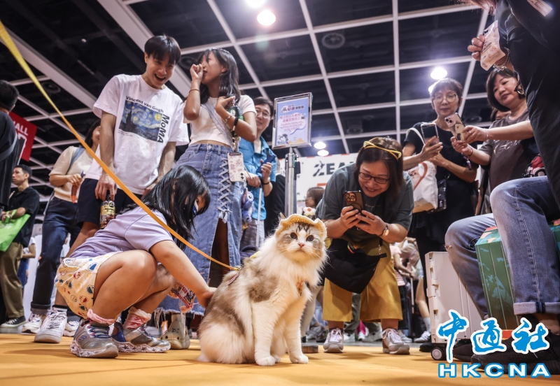 香港貓迷博覽會8月1日起一連三天在會展中心舉行,自疫情後的2023年舉辦首屆後,展會頗受歡迎,“喵經濟”展現巨大潛力。香港養貓群體不斷擴大,政府統計處數據顯示,全港有逾24萬住戶飼養貓或狗,佔所有住戶近一成,其中貓咪達18.4萬隻。養貓開支亦持續攀升,有調查指,逾八成養貓人士月均養貓支出達2006港元,按年增6.2%;每月豪擲3500至5000港元的“土豪貓主”比例從10%升至13%。(香港中通社記者 曹文毓攝) 香港中通社圖片