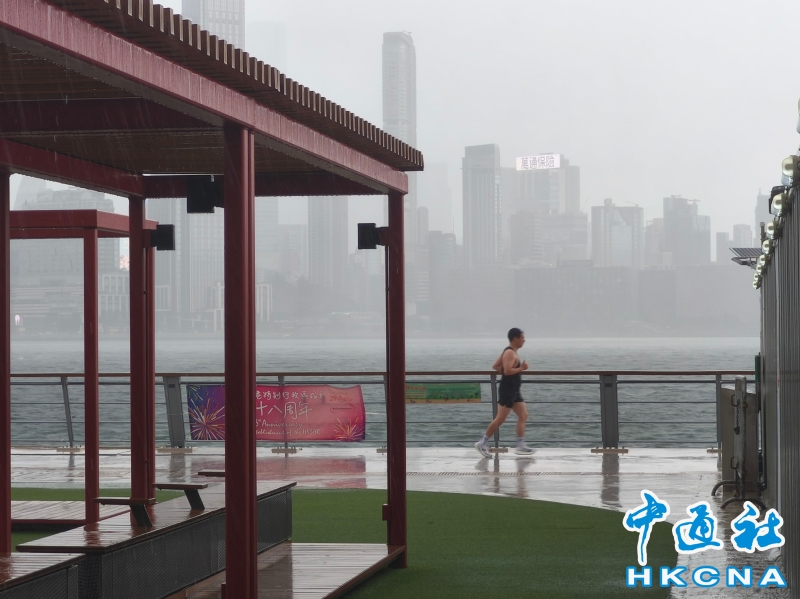 8月3日,香港市區狂風暴雨。天文台發出特別天氣提示,表示短期內香港廣泛地區可能受大雨影響,市民應提高警覺。另外,預料強陣風吹襲香港。如身處室外,請盡快到安全地方躲避。 香港中通社圖片