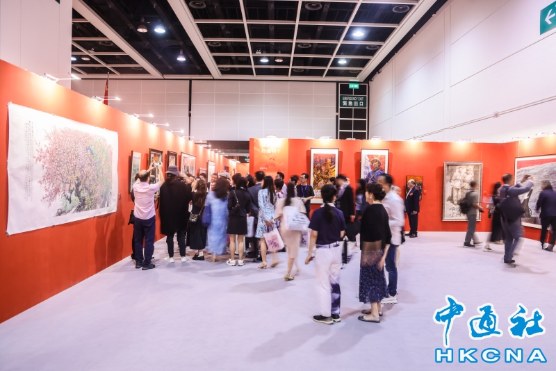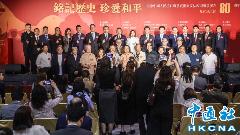 8月6日,“銘記歷史 珍愛和平——紀念中國人民抗日戰爭暨世界反法西斯戰爭勝利80周年名家名作展”在香港會展中心開幕。本次展覽,設置了銘記歷史、緬懷先烈、春回大地、江山永固、開天闢地、珍愛和平六個主題單元,展出了兩百多件藝術珍品,包括著名雕塑家吳為山創作的侵華日軍南京大屠殺遇難同胞紀念館組雕、著名畫家張仃創作的抗戰組畫、著名版畫家梁永泰創作的《戰鬥中的鐵騎》等。此外,還展出了齊白石、傅抱石、蔣兆和、李可染、李苦禪、葉淺予、何香凝、啓功、趙少昂等大師的精品力作。(香港中通社記者 曹文毓攝) 香港中通社圖片