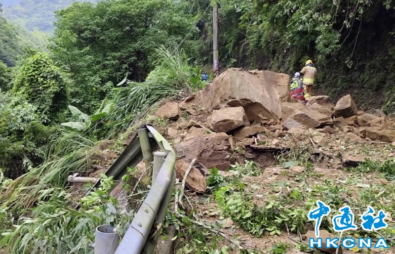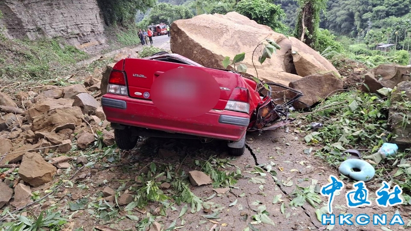 •   8月6日下午3點半左右,台灣苗栗縣泰安鄉苗62-1線道路發生落石坍方,一輛行經該處的紅色轎車遭巨石砸中,車內2人不幸身亡。 香港中通社圖片