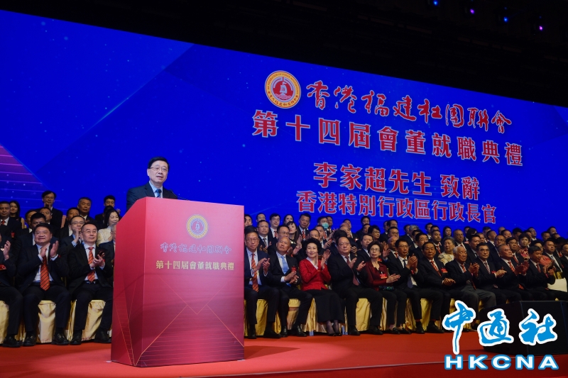 •   8月22日,香港福建社團聯會第十四屆會董就職典禮在香港會展中心舉行。圖為香港特區行政長官李家超致辭。(香港中通社記者 許其皓攝) 香港中通社圖片