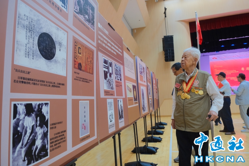 •   8月26日,《勠⼒同⼼——粵港抗戰史實展》港澳區巡展在香港開幕。圖為原東江縱隊港九獨立大隊老游擊戰士聯誼會副會長羅競輝參觀展覽。(香港中通社記者 許其皓攝) 香港中通社圖片
