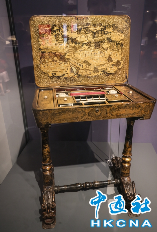在18至19世紀期間,廣州是中西貿易的集中地。位於城外西南方珠江河畔的商館區內有多條繁盛的購物街,店舖林立,售賣各式手工藝珍玩、零售茶葉、土產、酒食等,以外國商人為目標顧客。近日,香港藝術館呈獻“廣州購物誌──18至19世紀外銷藝術”展覽,展示不同種類的外銷藝術藏品,呈現當時廣州購物天堂的風貌,還邀請本地動畫師崔氏兄弟製作動畫及互動投影,讓觀眾展開一段充滿藝術氣息的櫥窗購物之旅。(香港中通社記者 曹文毓攝) 香港中通社圖片