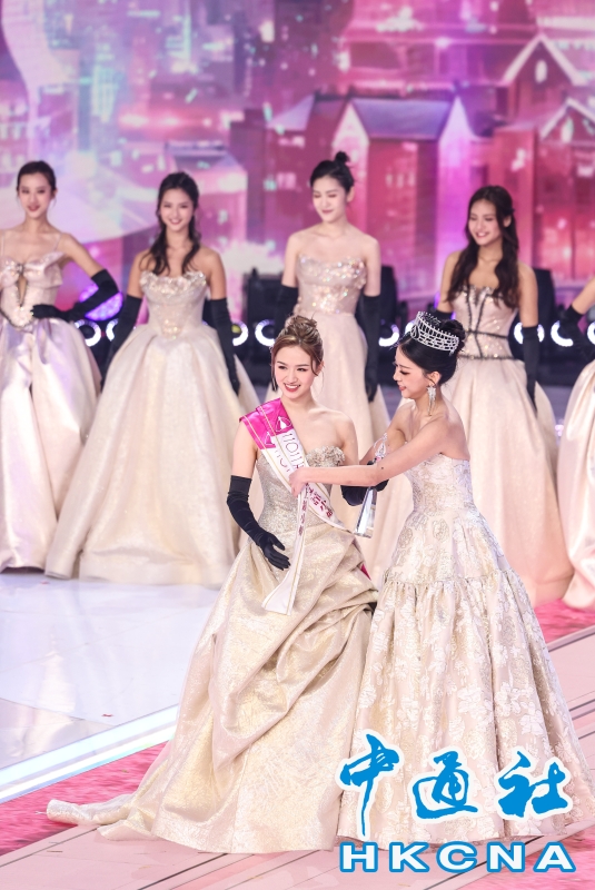 •   8月31日晚,香港無線電視一年一度的《2025香港小姐競選決賽》舉行。14 位候選佳麗角逐港姐三甲。圖為李尹嫣連奪友誼小姐、最上鏡小姐。 (香港中通社記者曹文毓攝)香港中通社圖片