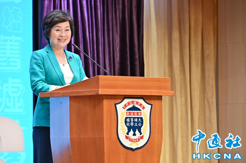 •   9月1日,香港特區教育局局長蔡若蓮博士上午到訪大埔舊墟公立學校和民生書院,出席兩校的開學活動,與師生共迎新學年。 香港中通社圖片
