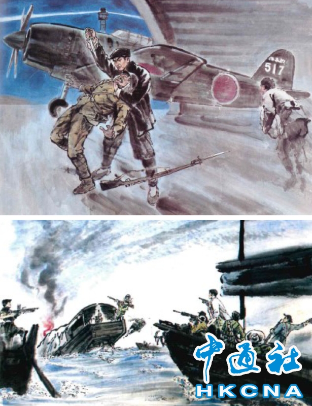 •   香港政府檔案處歷史檔案館9月3日推出本年度專題展覽──“山河不屈,忠魂不朽:紀念抗戰勝利80周年展”,透過珍貴歷史檔案與文獻,讓公眾回顧香港在日佔時期(一九四一至一九四五年)的苦難歲月,以及認識東江縱隊港九獨立大隊英勇抗敵的事蹟。圖為描繪東江縱隊港九獨立大隊抗日行動的畫作(陳挺通畫作)。(由原東江縱隊港九獨立大隊老游擊戰士聯誼會提供)。 香港中通社圖片