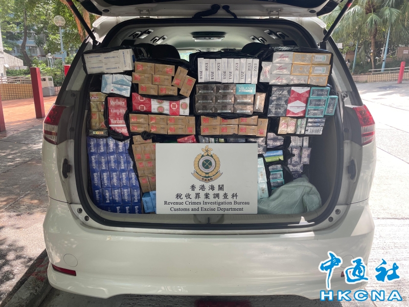 •   9月5日,香港海關公佈9月4日在黃大仙破獲一宗懷疑私煙分銷案件,檢獲約五萬二千支懷疑私煙,估計市值約二十三萬元,應課稅值約十七萬元,並拘捕一名男子。圖為檢取的懷疑私煙分銷車輛及部分檢獲的懷疑私煙。 香港中通社圖片