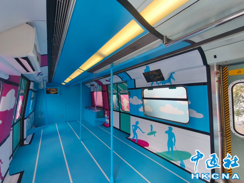 停泊在灣仔“水上運動及康樂主題區”兩卡已退役的東鐵線“烏蠅頭”列車,成為一個具香港特色的新地標和休憩空間。隨著港鐵不斷發展,港鐵公司透過“退役列車保傳計劃”,將兩卡已退役的“烏蠅頭”列車捐贈給發展局,並共同構思將這標誌性的列車重置於灣仔水上運動及康樂主題區,以作展示及公共活動空間。主題區展示車廂位置亦設置站牌、觀景台、圓形多用途廣場、人造草地、遮陽設施和夜光步道,為市民提供一個滿載集體回憶的公共休憩空間。 香港中通社圖片