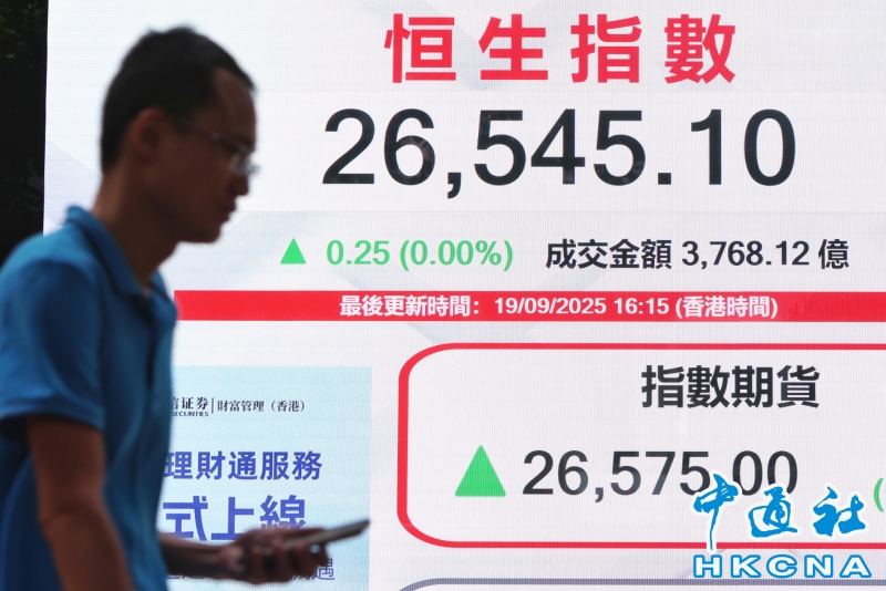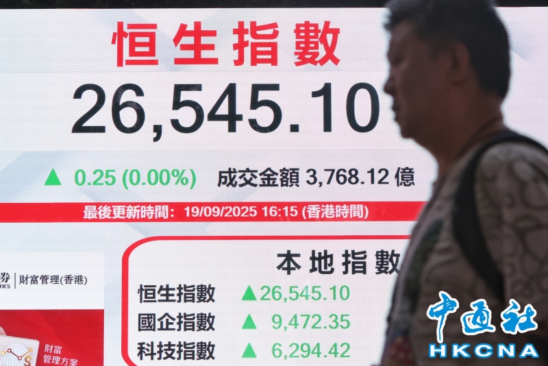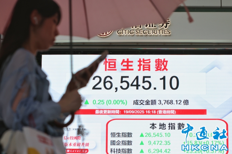 •   9月19日,截至收盤,香港恒生指數漲0.25點,報26545.1點,主板全天成交3768.12億港元。(香港中通社記者  謝光磊 攝) 香港中通社圖片
