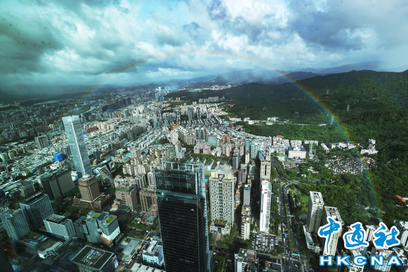 •   颱風“樺加沙”持續靠近台灣,外圍環流造成台北零星降雨,台北市天空雨後也出現彩虹。 香港中通社圖片