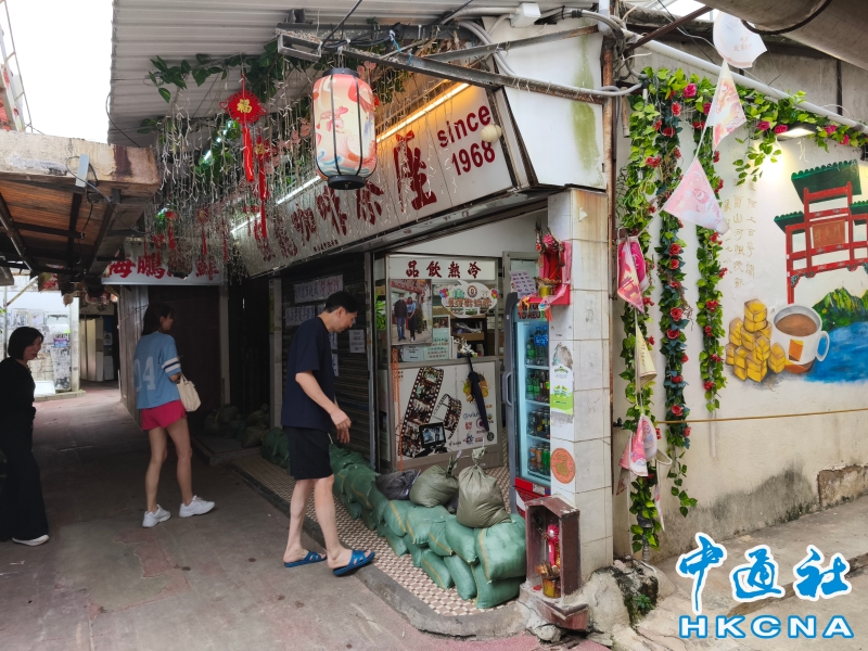 •   9月23日,香港天文台在下午2時20分,發出八號西北烈風或暴風信號。圖為水浸黑點鯉魚門不少商戶做好防風措施。 香港中通社圖片