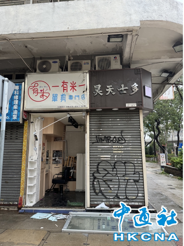 颱風”樺加沙”侵襲 深水埗一理髪店大門被吹毀