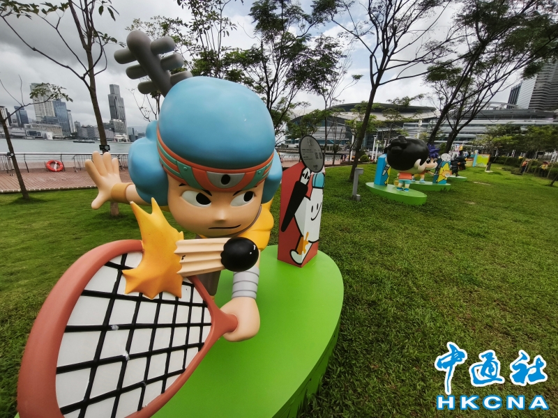 •   9月28日,動漫體育大本營內運動融入各動漫角色。在文創產業發展處的資助下,香港動漫畫聯合會於去年7月在灣仔海濱花園設置“動漫體育大本營”,展示不同年代的本地原創動漫角色,並介紹不同風格的動漫創作人,藉此向各位推廣香港動漫文化,為香港增添一個地標性的旅遊景點。同時為配合2024年的巴黎奧運及2025年的全國運動會,也將多項運動融入各動漫角色設計中。 (香港中通社記者洪少葵攝)香港中通社圖片
