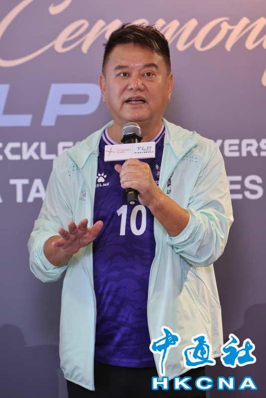 •   10月8日,TLP 大連排匹克球會舉辦簽約儀式,正式迎來香港首批職業匹克球球員,成為本地第一間簽約職業選手的匹克球會。圖為藝人陳百祥出席活動。(香港中通社記者  謝光磊 攝) 香港中通社圖片