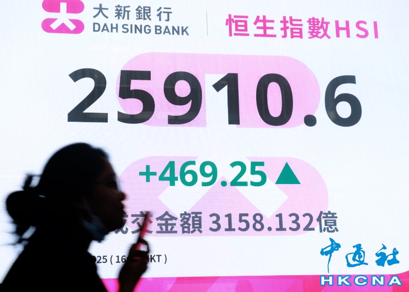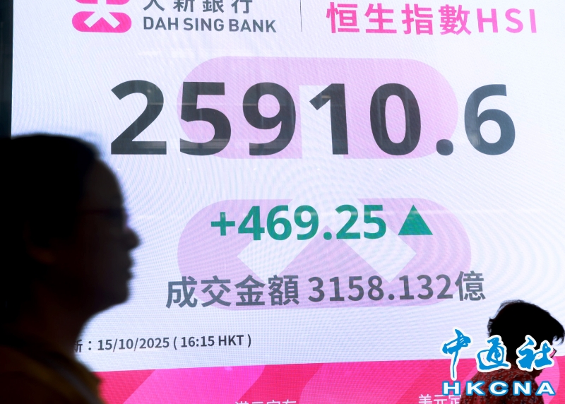 •   10月15日,截止收盤,香港恒生指數漲469.25點,漲幅1.84%,報25910.60點,主板全天成交3158.13億港元。(香港中通社 鄧梓傑攝) 香港中通社圖片