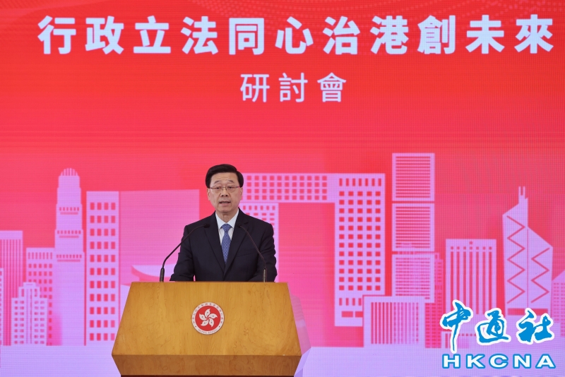 •   香港特區行政長官李家超16日在“行政立法同心治港創未來”研討會上致辭時,列舉近年多項行政立法良性互動成果,指今屆立法會的議政質量高,效率亦高。他深信,新一屆立法會議員必將深入社區和界別,了解民意、洞悉民情,積極建言,助力特區政府帶領香港深化改革,心繫民生,發展經濟,同創未來。(香港中通社記者  謝光磊 攝) 香港中通社圖片