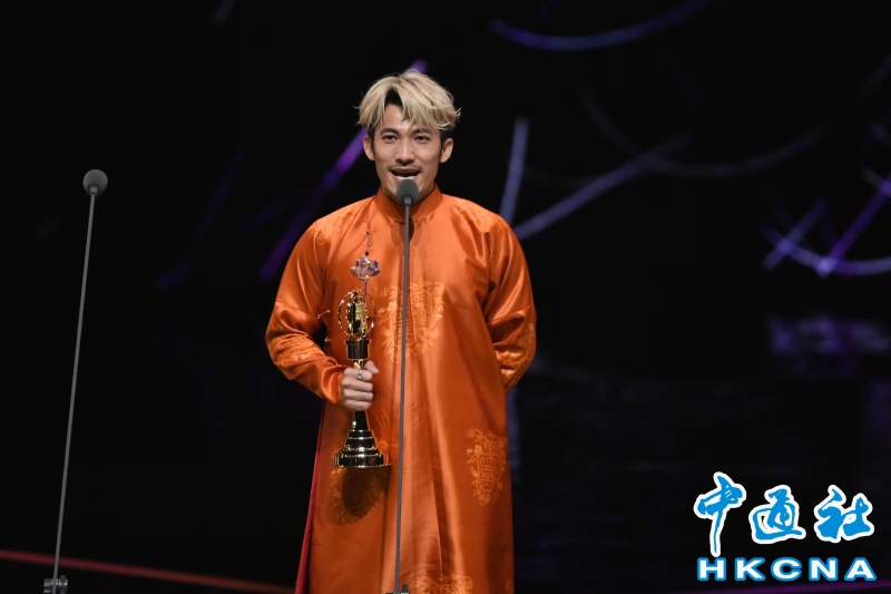•   第60屆戲劇類金鐘獎頒獎典禮於18日晚在台北流行音樂中心盛大登場。圖為連炳發獲第60屆金鐘獎戲劇節目男主角獎 香港中通社圖片