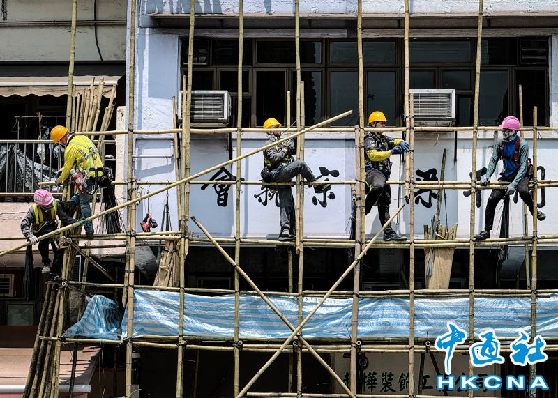•   香港特區政府統計處20日發表最新7月至9月的勞動人口統計數字,經季節性調整失業率由今年6月至8月的3.7%上升至3.9%;就業不足率在該兩段期間保持不變,維持1.6%水平。圖為搭棚工人在高空中工作。 (香港中通社記者 徐文峰攝) 香港中通社圖片