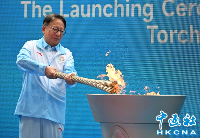十五運會火炬傳遞香港站起跑儀式舉行 陳國基燃點火炬分享到: