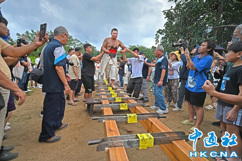 台灣新北市沙崙保安廟舉行過火、過刀橋活動分享到: