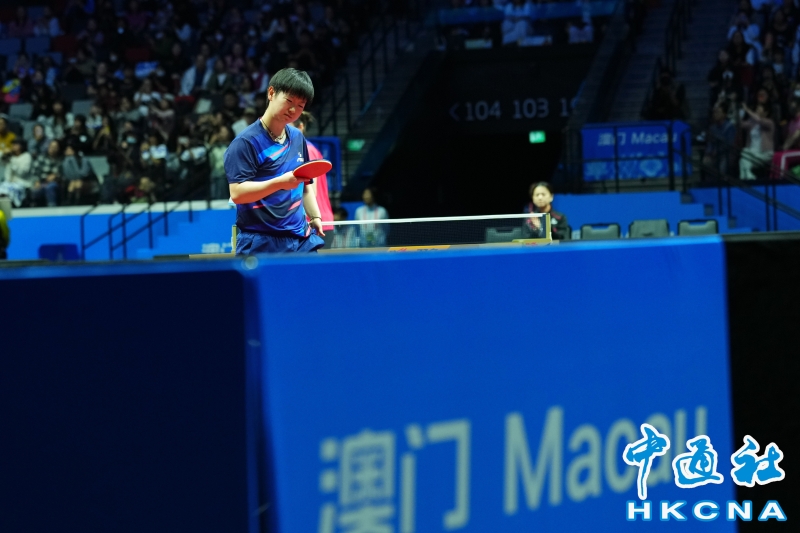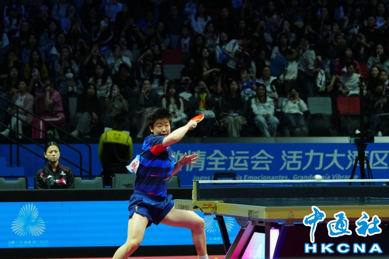 •   11月12日,河北隊孫穎莎在澳門銀河綜藝館舉行的第十五屆全國運動會乒乓球女子單打比賽中,以4比1戰勝山東隊王曉彤,晉級八強。 香港中通社圖片