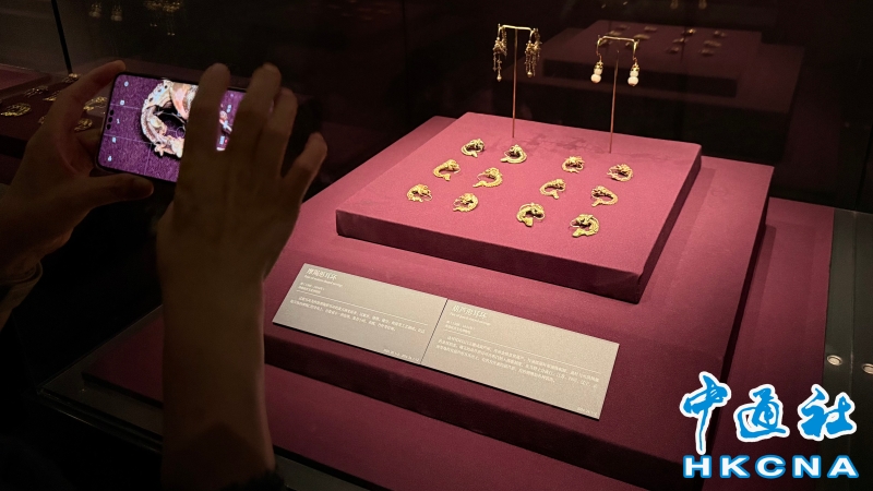 •     2025年11月15日,“黃金縷——香港故宮文化博物館藏古代金器展”在首都博物館展出。圖為觀眾拍攝展品。 香港中通社圖片
