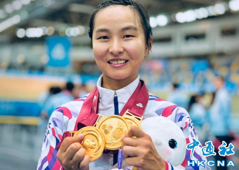 •   香港特區政府政務司司長陳國基11月21日在深圳出席中國第十五屆全國運動會總體運行情況新聞發布會時指出,香港運動員在本次全運會中表現出色,在競賽項目中,共取得9金2銀8銅共19面獎牌,創下香港自回歸以來參加全運會的最佳成績。圖為在本届全運會奪得三面單車項目金牌的新晋“女車神”李思穎。(香港中通社記者 徐文峰 攝) 香港中通社圖片