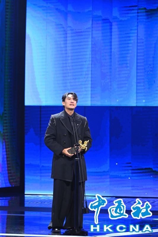 •   2025第62屆金馬獎頒獎典禮11月22日於台北流行音樂中心登場。圖為張震以電影《幸福之路》獲第62屆金馬獎最佳男主角獎。 香港中通社圖片