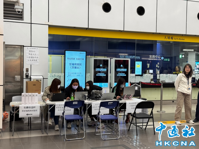 •   11月28日,香港港鐵公司在大埔墟站票務中心對面設立支援站,若有居民於火災期間遺失或損毀樂悠咭或殘疾人士八達通,可辦理特快補領登記,會靈活彈性處理文件要求,並於翌日發出新咭。八達通公司八達通Octopuss會提供一張已增值的臨時八達通,讓居民於等候新八達通期間可以使用。(香港中通社記者 鄧梓傑 攝) 香港中通社圖片