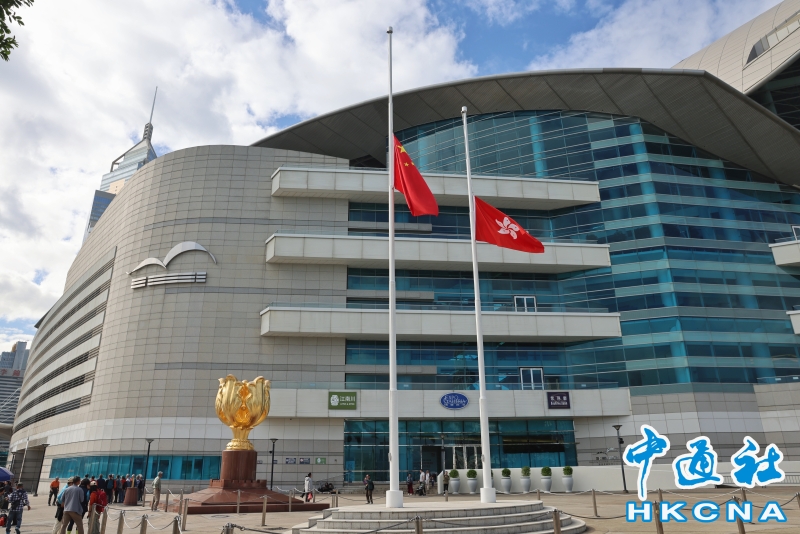 •   11月29日,為表達對大埔宏福苑火災罹難者的沉痛哀悼,香港特區政府今日起進行悼念活動。圖為香港金紫荊廣場降半旗誌哀。(香港中通社記者 謝光磊 攝) 香港中通社圖片