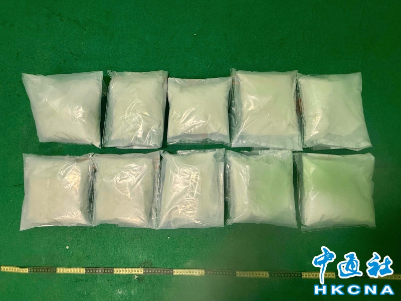 •   12月2日,香港海關公佈於11月30日在香港國際機場偵破一宗空運販運毒品的案件,檢獲約十公斤懷疑氯胺酮,估計市值約四百五十萬元。圖為檢獲的懷疑氯胺酮。 香港中通社圖片