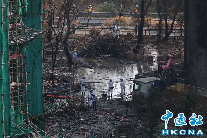 •   12月5日,香港警方繼續在火災現場善後。大埔宏福苑大廈內部階段性搜索工作已經完成,大廈外的搜索工作展開。(香港中通社記者鄧梓傑攝影) 香港中通社圖片