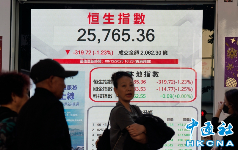 香港恒生指數跌319.72點 報25765.36點分享到: